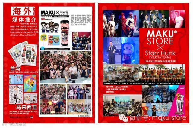 MAKU®,一个践行环保理念的亚洲快时尚潮牌,在近年迅速崛起,得到众多亚洲年轻潮人的认同。短短几年,已进驻了包括台北、台南、新加坡、吉隆坡、美里、广州、深圳、青岛、成都等亚洲各大城市,在40多个大中城市开设了近200家MAKU专卖店,曼谷、澳门、香港、文莱的拓店计划正在进行中⋯⋯,海外媒体对MAKU品牌及产品也有相关报道,包括台湾的《自由时报》、《苹果日报》、诚品书店的《诚品生活》,马来西亚的《ELLE》,新加坡的《海峡时报》等。