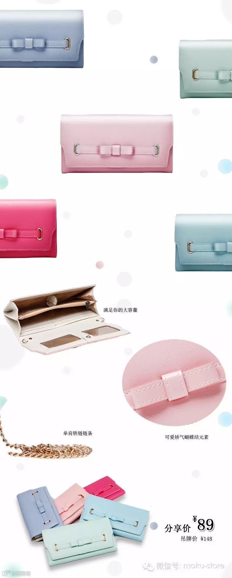【小巧可爱蝴蝶结单肩长款钱包系列】