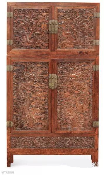 翰海秋季拍卖会上,一件清黄花梨雕云龙纹4件柜以1100万元成交,创下当时国内古典家具拍卖的最高价。