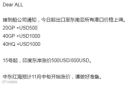 继东南亚运费也大涨之后,又有航线“按捺不住"了。