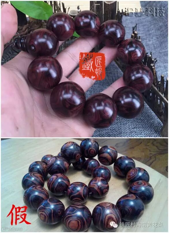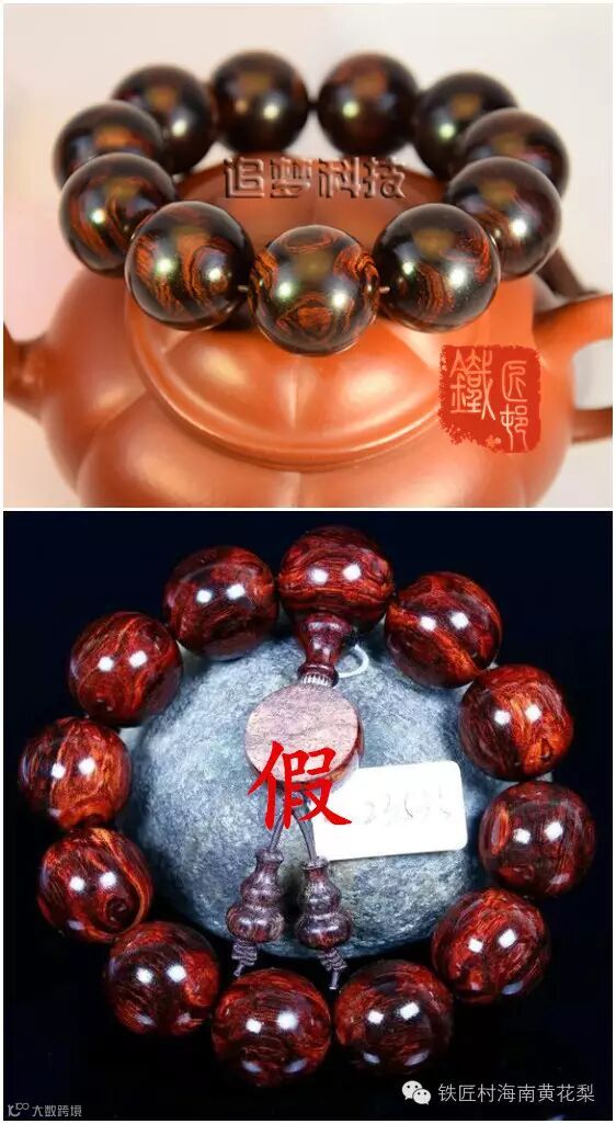 1、看纹理:紫檀柳珠子多是顺纹的,纹路发红且感觉很淡,黄花梨的纹路很少有发红的,个别也是紫色变浅过渡成红的。