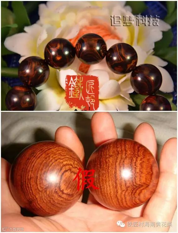 3、闻香味:海黄有独特的降香味,尽管制成手串或把件后香气不明显,但是在穿孔处还是依稀可闻的;白酸枝属于酸枝木,因为在加工过程中散发与食用醋相近的气味而得名。