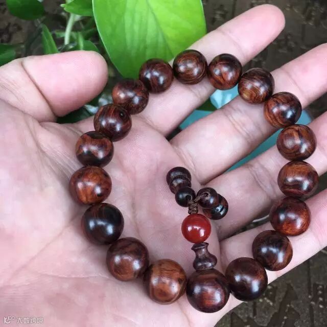 拍品1:铁匠村®1.2cm紫油梨老料鬼脸海黄手串