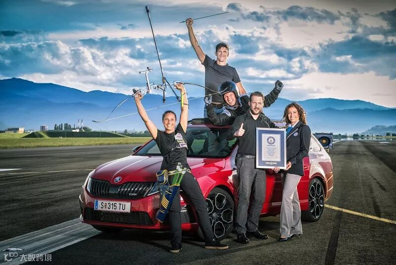 事实证明,Škoda(斯柯达)Octavia Combi RS 245与这两名体育选手做到了,透过慢动作我们在来回顾一下这个纪录有多难。首先,射箭位置距离箭靶大约有70米,而且由于箭的轨迹是弧线,因此从移动的车上空中抓飞箭,大约降到只有30米的距离,大概就是0.5秒的反应时间。这项精心策划的表演虽然有点儿危险,但不仅突显出Octavia Combi RS 245的加速性能,同时也也替他们赢得吉尼斯世界纪录的认可。