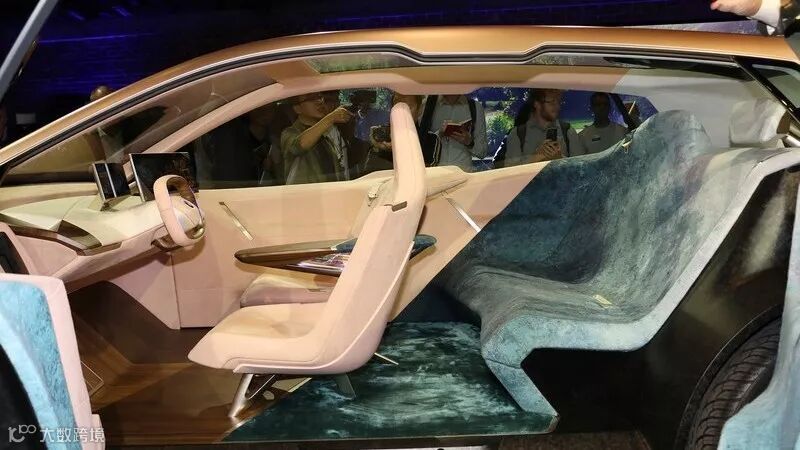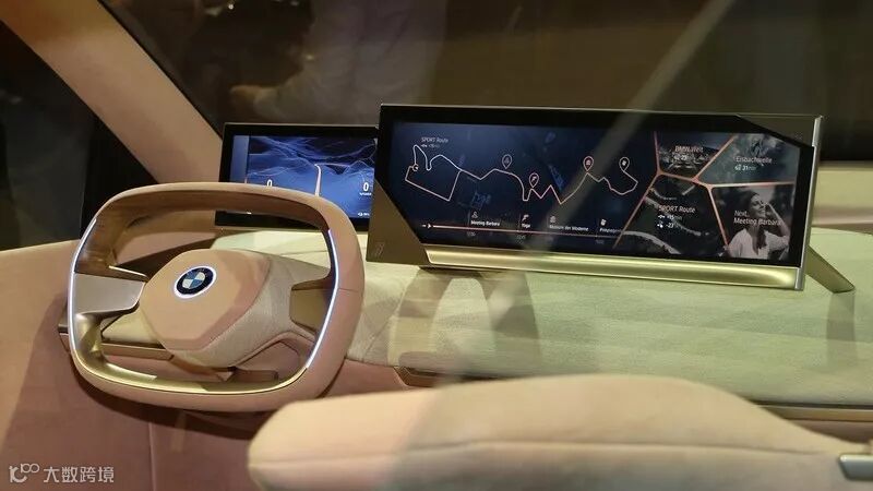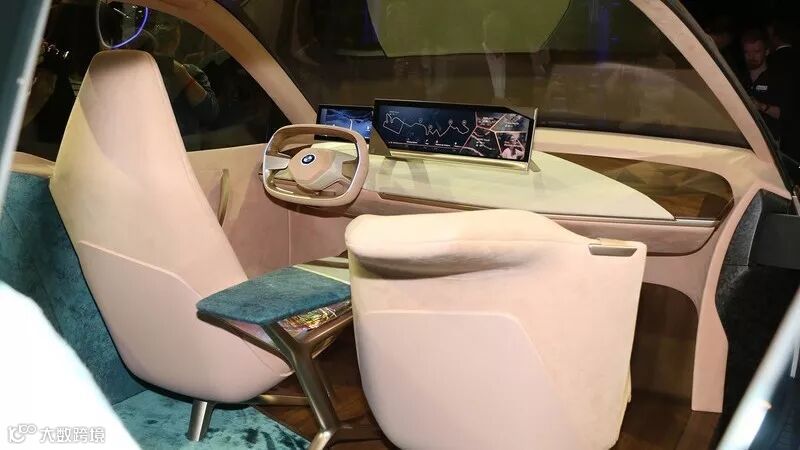 进入Vision iNEXT的车厢内,映入眼帘的除了宛如顶级豪华家居的座舱设计,以织布面料搭配充满自然气息的木纹,并将前后座椅用不同色块区分之外,中央控制台上方的两个大尺寸液晶触控显示器搭配双幅式方向盘更是视觉重点,所有信息都能通过这两块屏幕传达给车内乘客。搭配上车顶上方的全景式大型玻璃天窗,可说是完全符合宝马原厂想营造的宛如居家舒适风格的驾车体验。