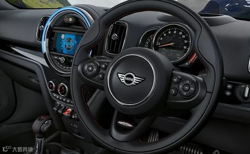 ▲Mini Countryman Blackheath Edition座舱内采用黑色皮革、黑色钢琴烤漆饰板以及黑色无烟煤材质车顶篷的整体感铺陈