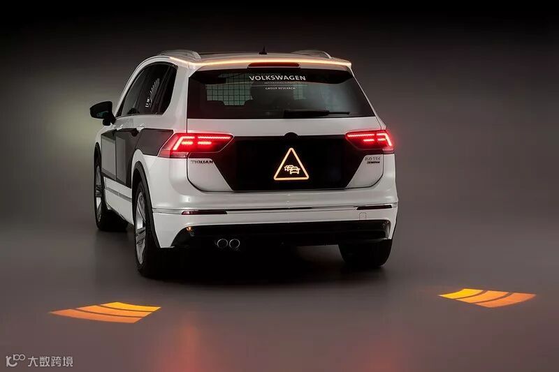 此外,大众也在进行矩阵式尾灯的相关研究,也期望透过矩阵式尾灯的导入,让尾灯可以向后方驾驶传递更多的信息。大众期望导入的,包括警告信息与前方道路状况的提示,可以提醒后车驾驶员前方的道路状况,包括急停或者堵塞路段即将结束等,可以让后方驾驶员提早应对相对的状况。同时,与头灯相同,也可望植入Optical Park Assist光学停车辅助系统,在路面投影虚拟的路径指引与距离显示,增加停车的便利性与安全性。
