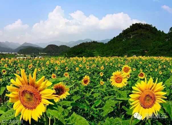 大木花谷背靠陡峭大山,谷地中种植大面积花田花海,从初春的冰岛虞美人、三色堇;到夏天的向日葵、格桑花、硫化菊;再到秋天的一串蓝、鼠尾草等蓝色花卉,形成连天花海、山水相依的谷底花海景观。
