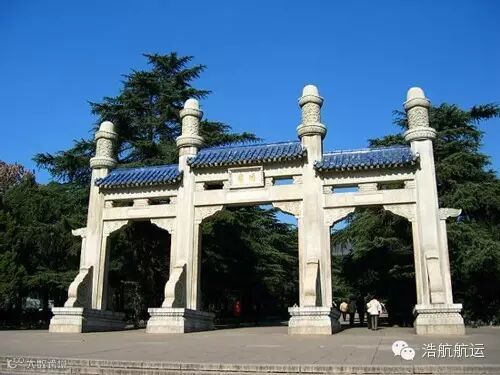中山陵位于南京市东郊钟山南麓,钟山风景区内,前临平川,背拥青嶂,东毗灵谷寺,西邻明孝陵,整个建筑群依山势而建,由南往北沿中轴线逐渐升高,从空中往下看,像一座平卧在绿绒毯上的“自由钟”。
