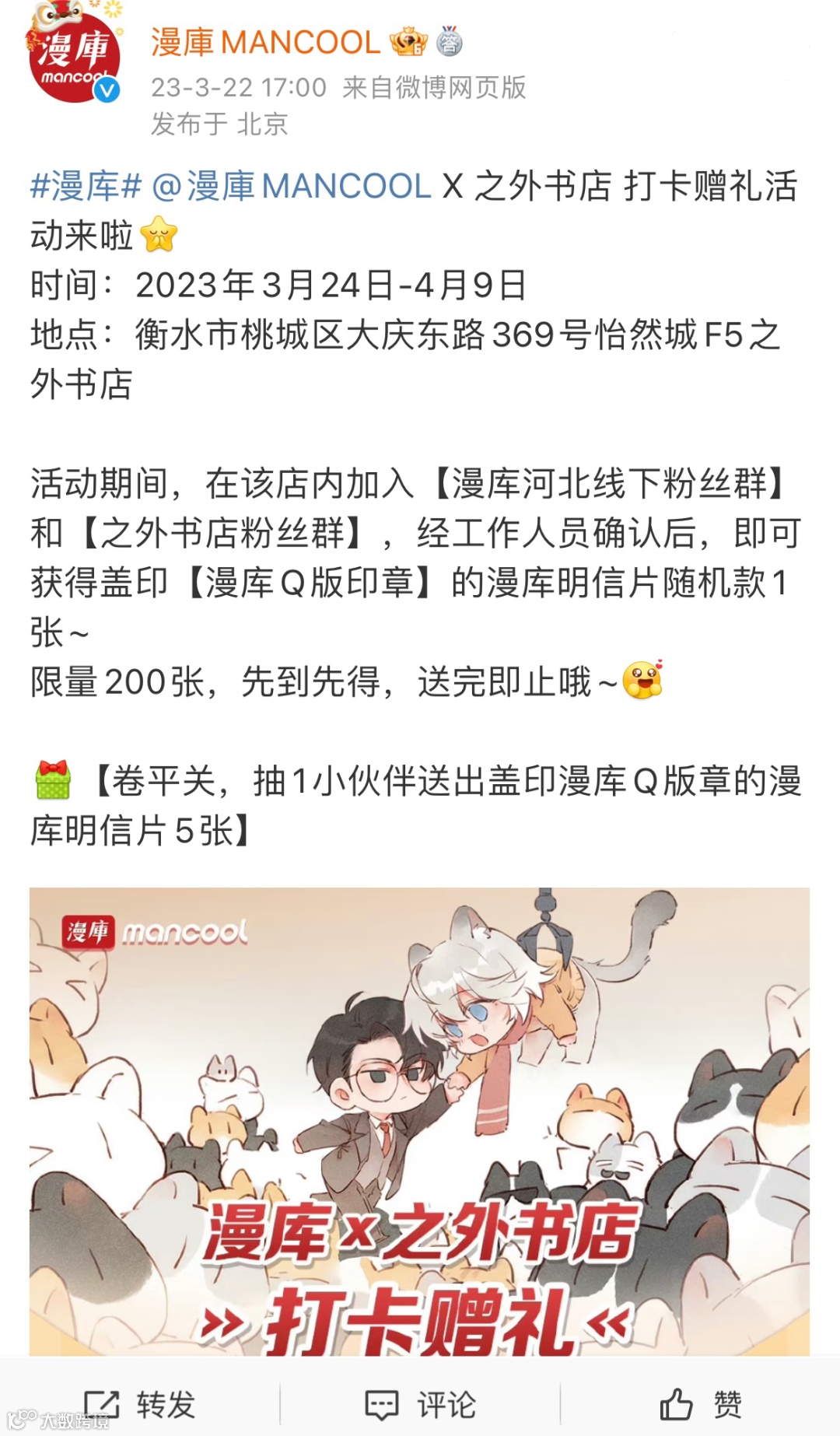 随机抽1人送盖印漫库Q版章的漫库明信片5张