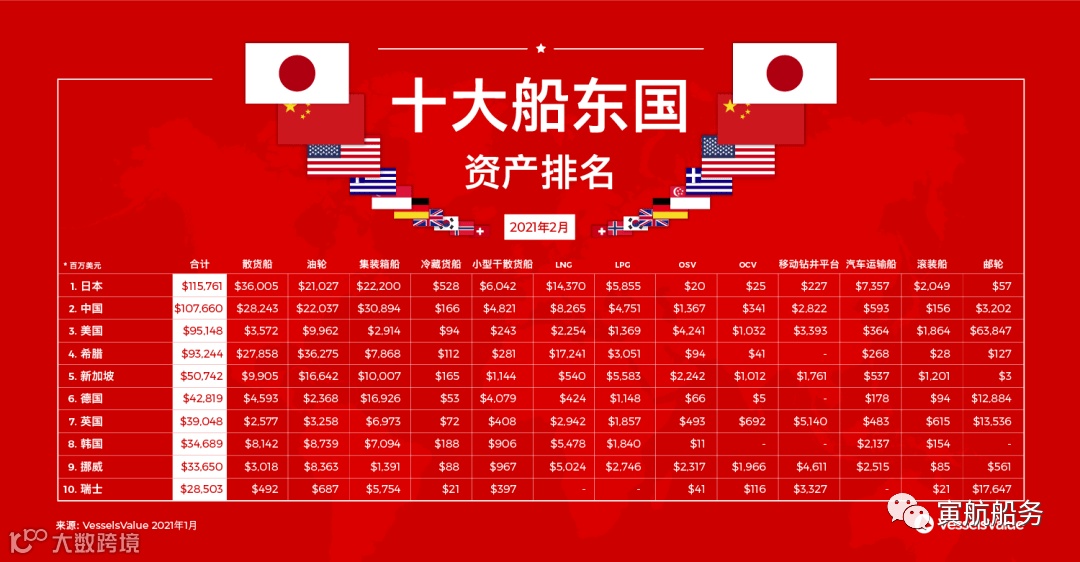 经历了动荡的2020年,在几乎所有船舶类型都经历了历史性的高点和低点之后,日本仍然以1150亿美元的总资产排名全球船东国首位。
