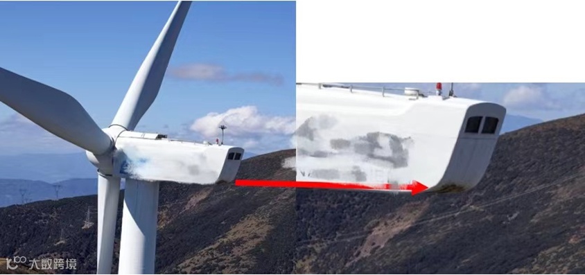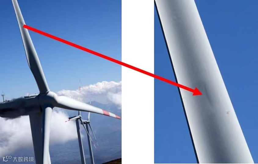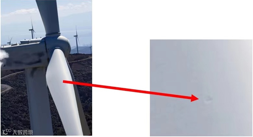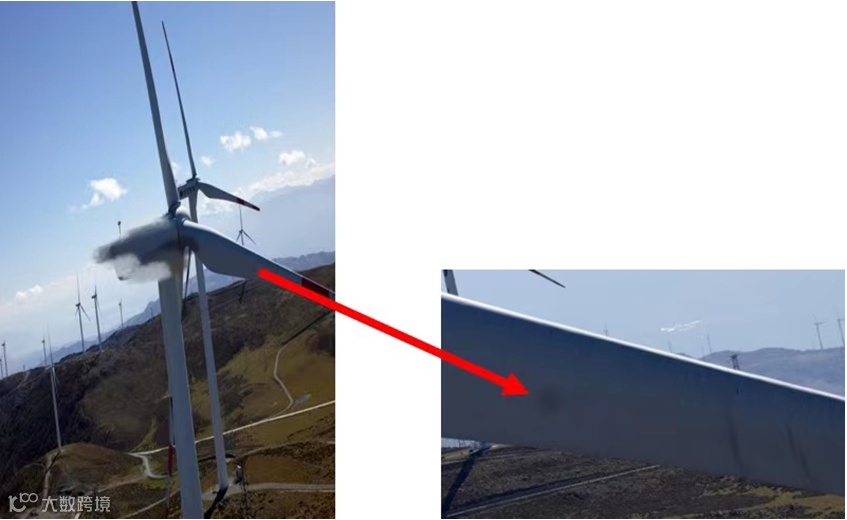 检测风机异常点:凹痕,影响美观,可能导致叶片效率轻微降低,不会导致严重后果。