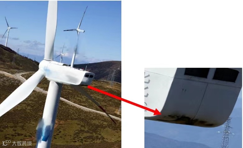 检测风机异常点:漏油、污渍,影响美观,可能导致叶片效率轻微降低,不会导致严重后果。