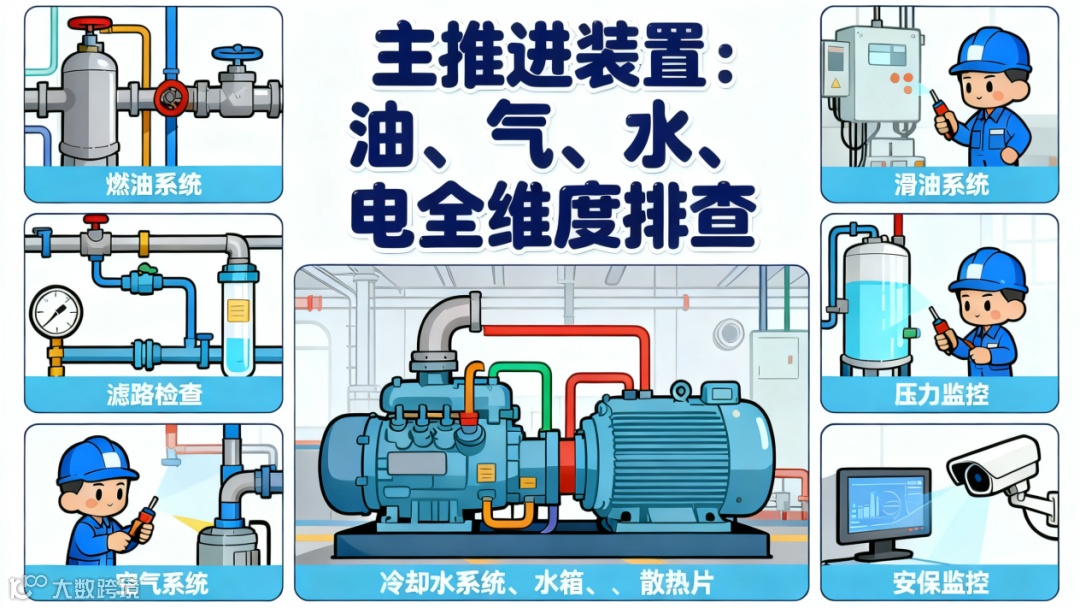主机是船舶 “心脏”,需逐项核查以下核心系统: