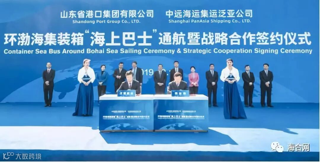 10月17日山东港口集团烟台港、渤海湾港携手中远海运集运泛亚公司,就环渤海集装箱“海上巴士”举行启动仪式及合作协议签字仪式。