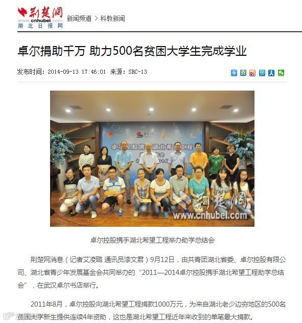 多年来,卓尔企业使终以人为本,爱心助力贫困学子圆大学梦。