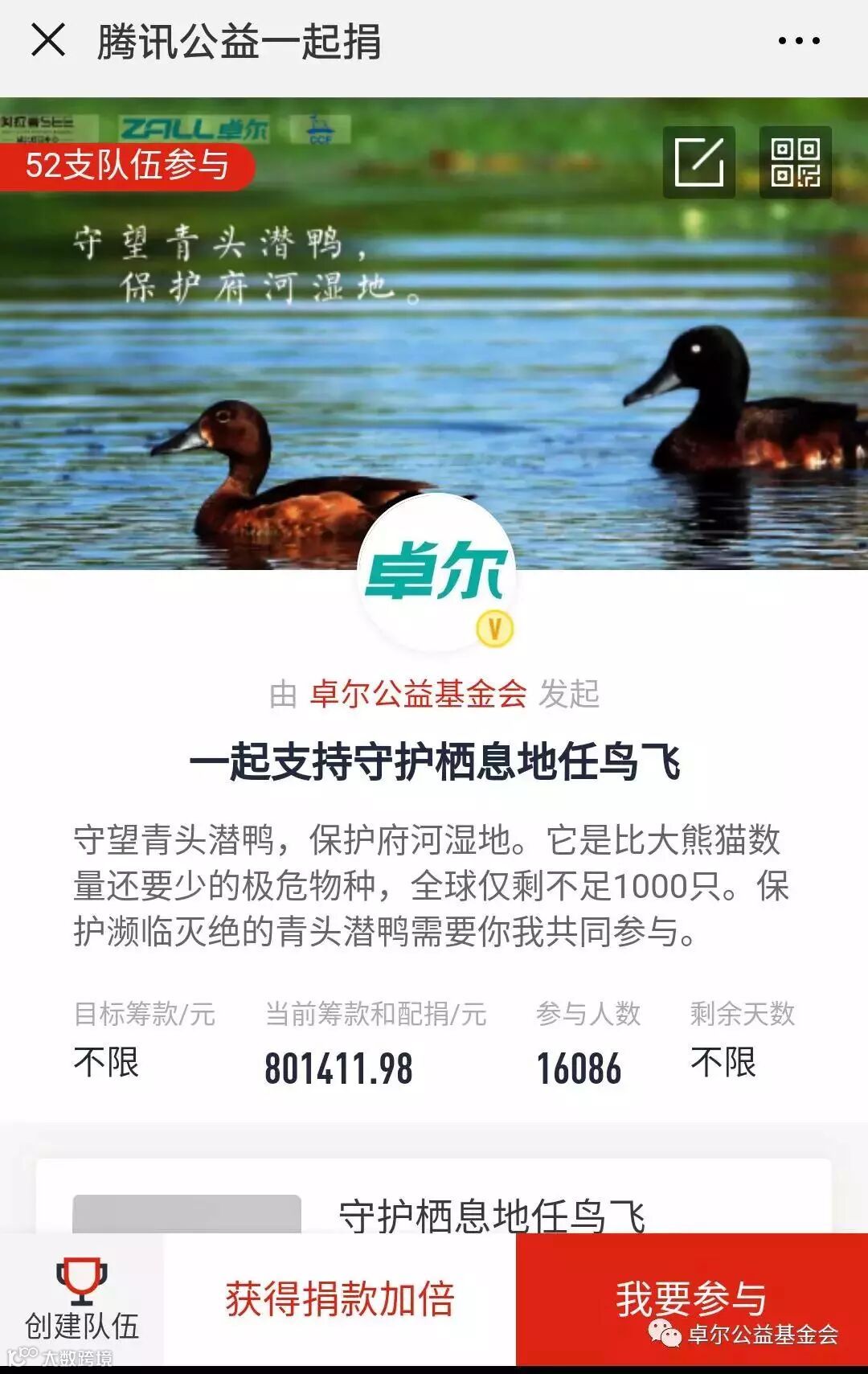 该活动由卓尔公益基金会联合阿拉善SEE湖北中心、长江生态保护基金会在腾讯“99公益日”平台发起,9月7日起,为期三天的募捐,卓尔公益基金会发动卓尔企业员工组建52支爱心队伍,带动了1.6万余人参加,捐款人次超过2.4万余次,公众筹款80余万元,卓尔基金会定向配捐50万元,总筹款金额超过130万元。