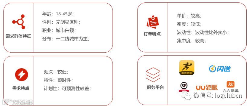 如今在城市中,除了外卖需求不断增加之外,遗忘物品、加急文件、证件、蛋糕、鲜花等点对点的同城速递需求也开始大量出现,人们愿意用金钱解决“难、忙、急、懒”问题,因为是低频刚需,对价格敏感度较弱,更看重服务体验。从当前的数字来看,同城速递的规模尚不算大,但是在客单价上拥有很大的优势。同时,在新零售时代,除了讲究商品质量外,配送服务更是成了重点,这时同城速递的优势便凸显出来,未来的潜力不可估量。