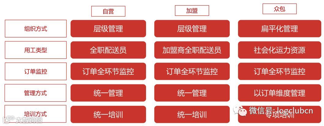 同城配送平台的配送模式分为自营、加盟、众包三种。外卖平台的自建物流早期通常采用自营模式,即平台直接管理配送员,与配送员有签订劳动合同;在拓展市场阶段,为快速取得市场份额,通常采取加盟的方式;随着加盟运力管理水平的提升,美团等平台正逐步将自营运力转换为加盟。而众包模式则是利用社会闲置运力,属于共享经济的一种,与自营、加盟相比有成本及效率优势,目前看来最适合企业在同城速递行业进行快速扩张。