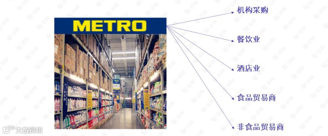 麦德龙主打仓储式超市,营业面积普遍超过1万平方米。内部结构比较简单,通常采用高4.5米的工业用大型货架。货架下半部分用于商品的陈列展示,上半部分则用于相应商品的存放,起到了仓库的作用,从而使销售和仓储合为一体。区别于普通超市,麦德龙的目标客户包括餐饮业、酒店业、食品贸易服务商等B端客户。