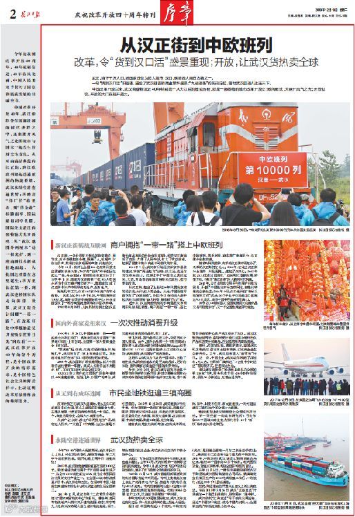 12月18日,《长江日报》刊发16个版“庆祝改革开放四十周年特刊·序章”,第2版“从汉正街到中欧班列,改革,令‘货到汉口活’盛景重现;开放,让武汉货热卖全球”一文重点聚焦汉口北立足传统市场,搭乘互联网快车,通过“国际化”“互联网化”创新发展、转型升级,不断为“新汉正街”注入新的时代内涵。