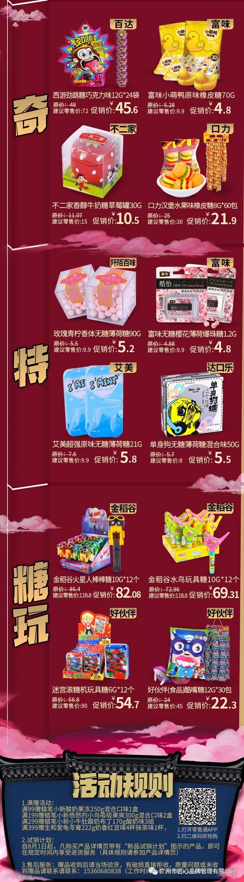 主营国产食品,包括肉干小食、糕点糖果、方便速食、饼干炒货、调料底料等应有尽有!!