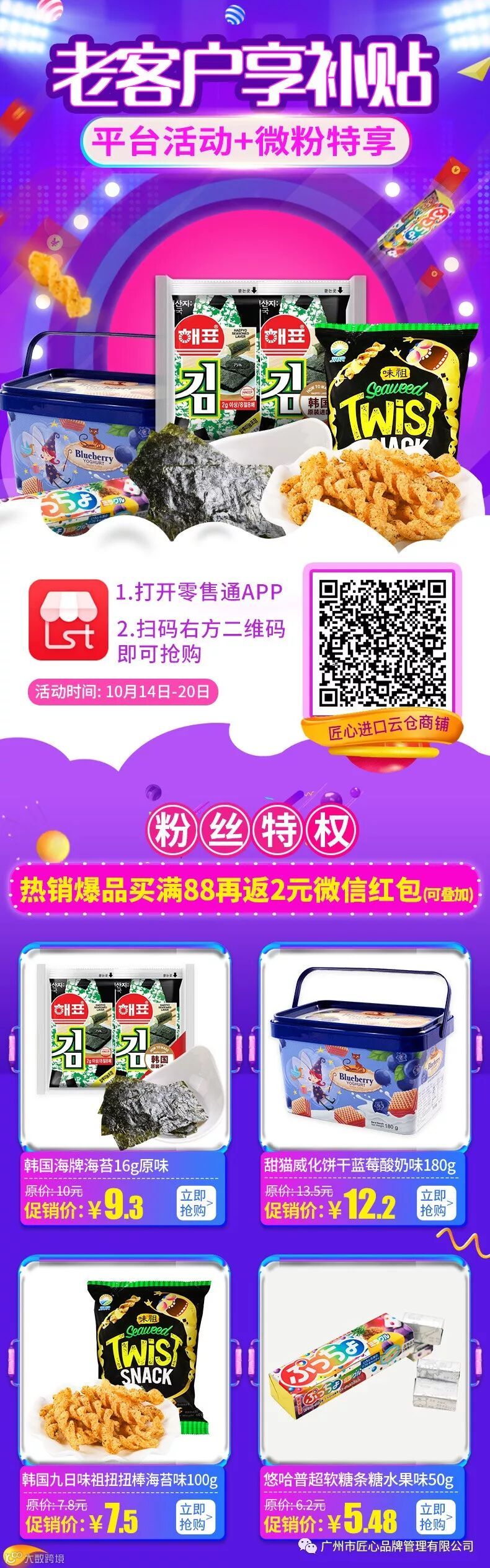 匠心品牌管理有限公司旗下猫趣国产、匠心方便速食、东旺云仓及匠心进口等四家零售通店铺本周匠粉专享
