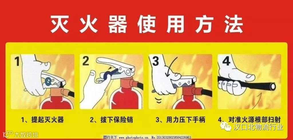 如不幸遇到火灾,自救是很有必要的,在火灾初起灭火器使用得当,能很好的控制火势。所以灭火器的用法大家一定要学会!大家一定要学会!大家一定要学会!