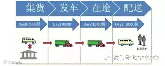 1、当天提货,仓储集货、建包,装车,00:00后发车;