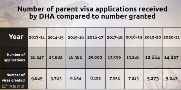 最新数据显示,2013年至2021年期间,全澳共递交147,888份父母移民申请,而批复的只有63,473份,积压84,415份,每年递交的申请数远高于批复数量。