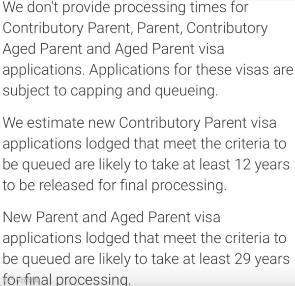 “排队父母和年迈父母移民”的签证申请,“可能需要等待至少29年。”