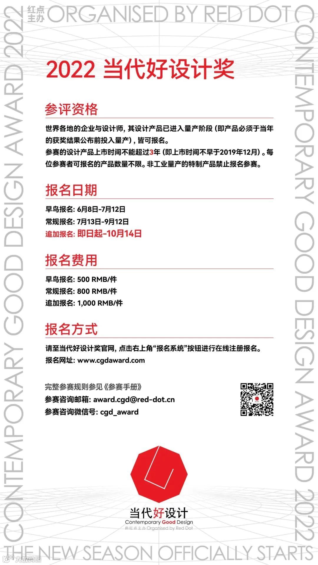搜索「当代好设计奖」或输入registration.cgdaward.com,即可直达报名页面。