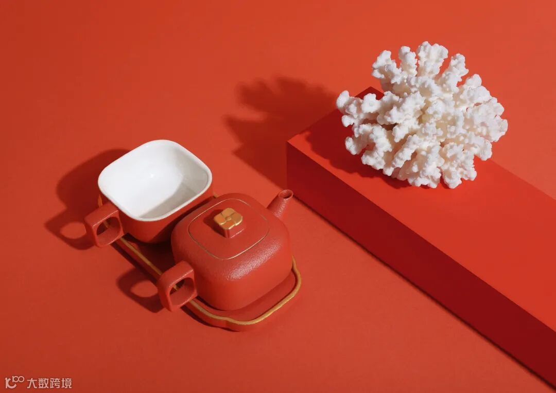 四合如意一壶一杯私享茶器灵感取自故宫博物院文物——玳瑁嵌牙黄杨屉四合如意盒,“四合”寓意太平,“如意”象征吉祥,四合如意纹融入茶器,寄予心想如意,诸事和美的寓意。茶器整体外观造型设计追求方与圆的平衡。矩形的壶身带来更大的容量,圆角小巧精致,便于拿握,每个细节都体现着几何美感。标配一茶壶和一茶杯,以及干泡如意茶盘,上下组合结构,方便收纳,提升桌面颜值。