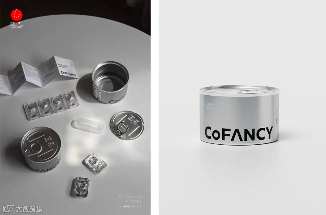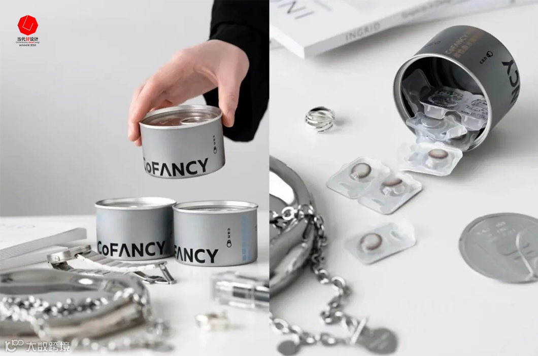 CoFANCY首次将彩色隐形眼镜产品以金属罐头的形式包装,将“罐头”打造成专属品牌标志。一方面罐头象征着包容一切的容器,彰显随性自由的态度。另一方面颠覆了传统彩色隐形眼镜的纸盒包装设计,与市面上的产品明显区分。