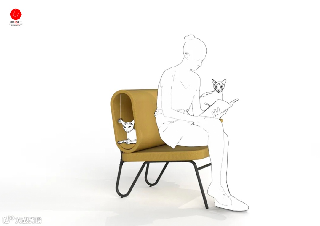 悦享椅的设计想法来源于养猫人都会遇到的情况:离开椅子的时候被猫咪霸占了椅子,以此为出发点,做一把可以和宠物共享的椅子。