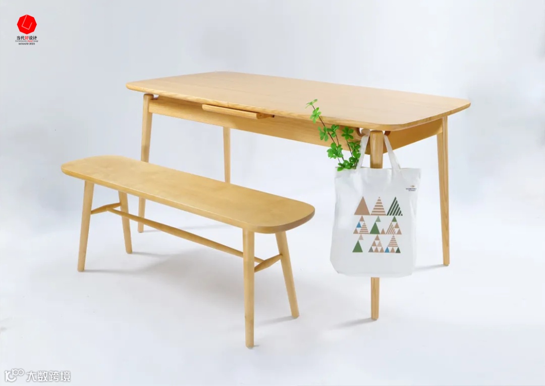晓意桌具备可拉伸的特性,不同模式的切换可满足不同时段、不同场景的使用需求。该产品运用传统工艺凸显实木的特性,桌腿和侧板结构提取了中国传统建筑里斗拱概念,营造出悬浮、轻巧的效果,同时解决使用者悬挂日常物品的临时需求。