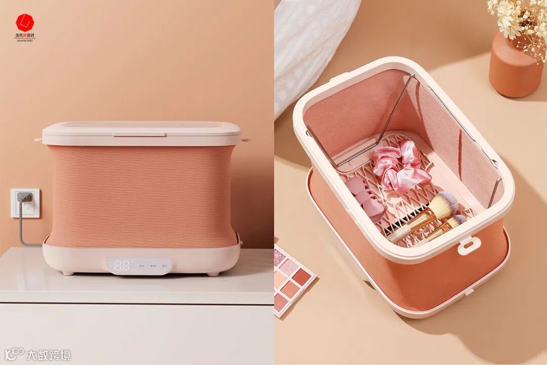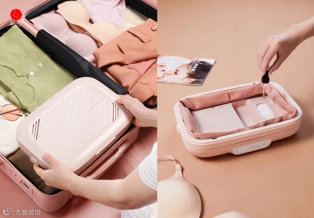这是一款体积小巧、可折叠便携的消毒烘干盒,具有紫外线消毒和烘干功能;衣物在潮湿环境容易滋生细菌,此产品将烘干温度与紫外线结合,杀菌杀螨率高达99.9%。折叠后小巧便携,可外出携带用于消毒烘干衣物,随身物品等,解决了酒店无法晾晒、干净收纳等问题。