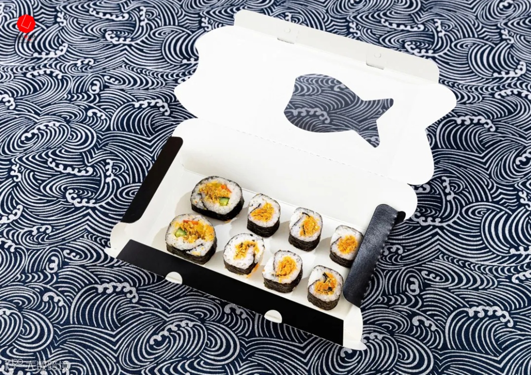 近年来外卖配送过程中被掉包、偷吃的事件屡见报端,防盗鸥翼鱼盒基于此设计出了高强度双重防盗扣,采用竹浆PLA环保降解材料制作,对纸板利用率更高,也更贴合可持续发展理念。用户在使用时必须沿着点刀处进行“破坏式打开”才能拆除防盗扣,这就有效防止了外卖在配送过程中被打开的情况,保障了消费者的权益。