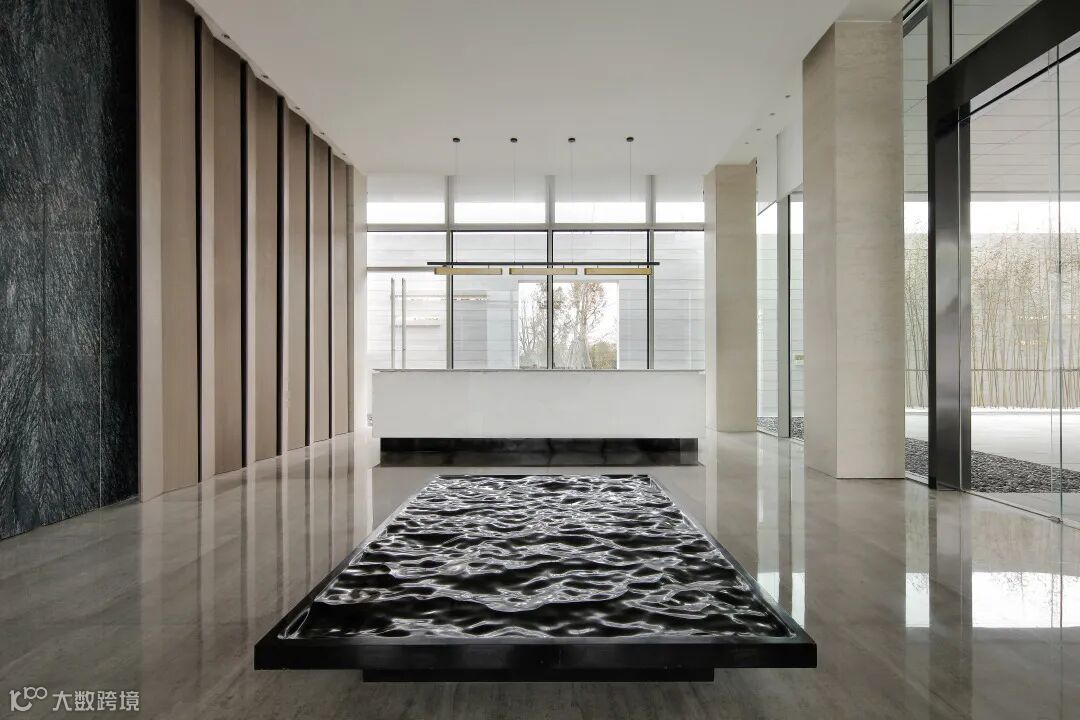 项目位于象湖西岸,以四面白墙,包裹起一面静水,一座雕塑化的环桥,连接起园区入口和漂浮于水面的二层“方盒子”。明确而克制的设计语言、极简而质朴的材料,构建出一个寂静、有力的建筑环境。音乐中有节奏,诗词中有韵律,空间也有其独特的肌理层次,连延不断的交替产生美感,在这个项目中,LSD以极简的黑白灰为室内基调,强有力的层次节奏,营造出疏密有致的美感。