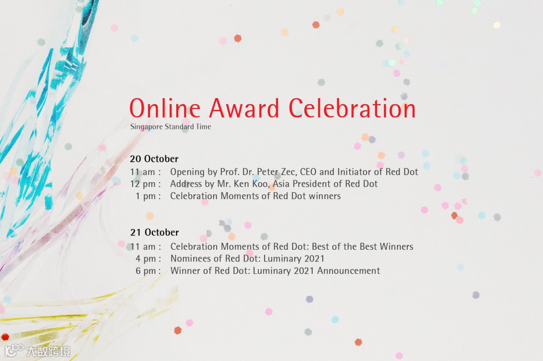 2021红点设计概念大奖已于10月20日至21日在线举行庆功活动,线上庆贺由红点奖机构创始人兼主席彼得・扎克教授博士开场致辞,随后由红点奖亚洲区主席邱智坚发表演讲,表彰和认可获奖的设计团队和设计师的成就。