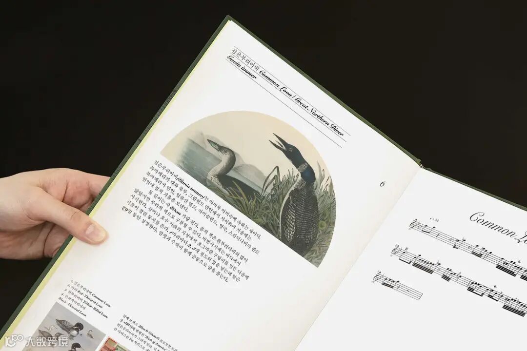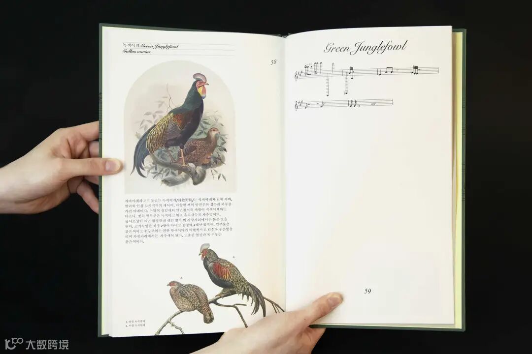 这本书既是一本鸟类指南又是一本音乐书,它将鸟叫声记录为乐谱,并通过音频转换程序进行转录。作为鸟笼的视觉隐喻,鸟类学插图呈现在拱形的图框中。虽然鸟鸣声是由电脑转换为乐谱的,但书封面上的字体和配色都是经过精心挑选的,书的尺寸受到实体乐谱书影响,尺寸更大一些,彰显一种优雅的风格。