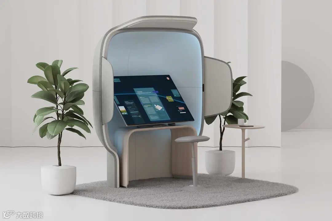 Flowspace Pod吊舱设计将使用者遮挡和保护起来,创造一个可控的工作环境,使他们能够集中精力,同时仍然保持与周围环境的联系。基于专有的传感系统,吊舱通过使用来自屏幕的互动和日历的传感反馈,以及来自内置摄像头的数据,帮助使用者进入和退出专注的状态。身体姿势、微表情、心率和呼吸都能被检测到,并用于调整对物理及数字干扰的屏蔽程度。