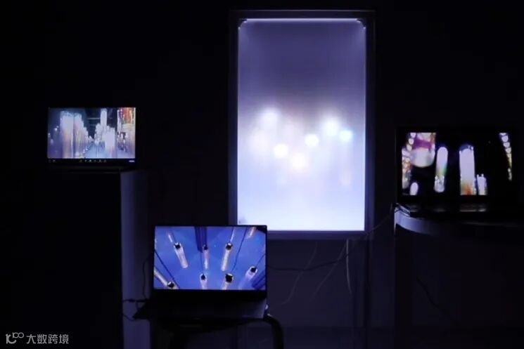 『反射岛』是一个通过在线视频电话来呈现的互动光线装置,只有通过Zoom这一网络视频通讯工具才能上岛。该装置由九个悬挂的电动灯组成,装在一个内部有镜子的盒子里,每盏灯都是用一个白色的LED制成,安置在含有少量水的覆有双色涂层的亚克力圆柱体中,每个圆柱体都与一个进电机相连,它跟随观众那边通过Zoom传输的声音来驱动。在摇晃时,这些五彩缤纷的灯会在盒子里投下绚丽多彩的、波澜起伏的影子。观众的声音越大,光线的起伏就越大。