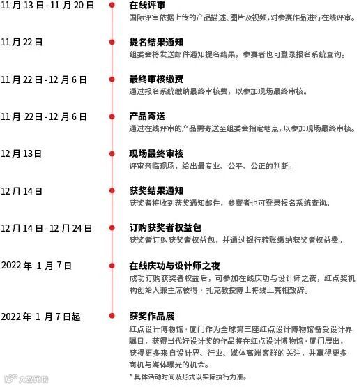 目前,2021年当代好设计奖已进入在线评审阶段,将在接下来的时间里陆续进入以下重要环节,请各位参赛者时刻关注我们的最新动态: