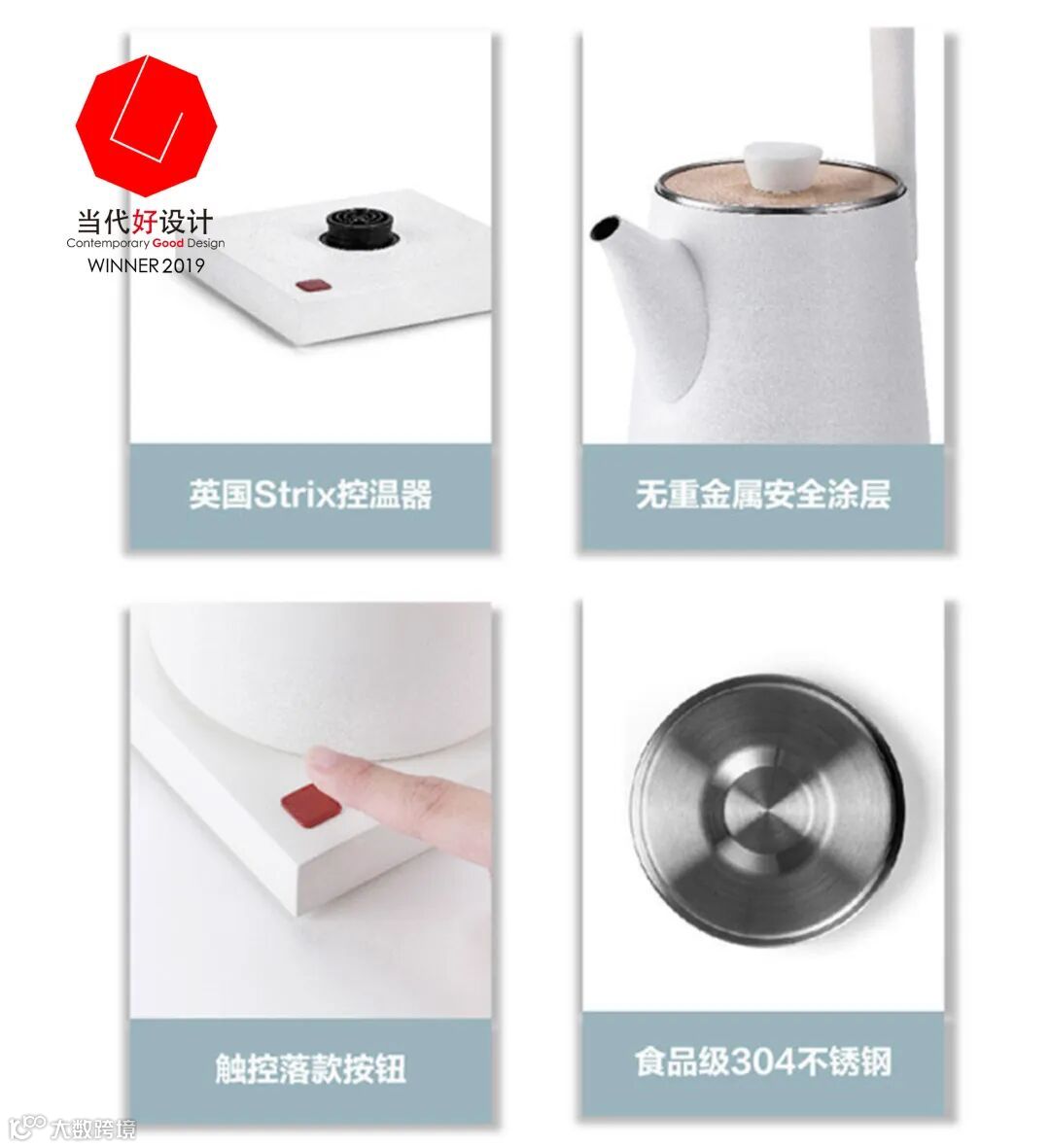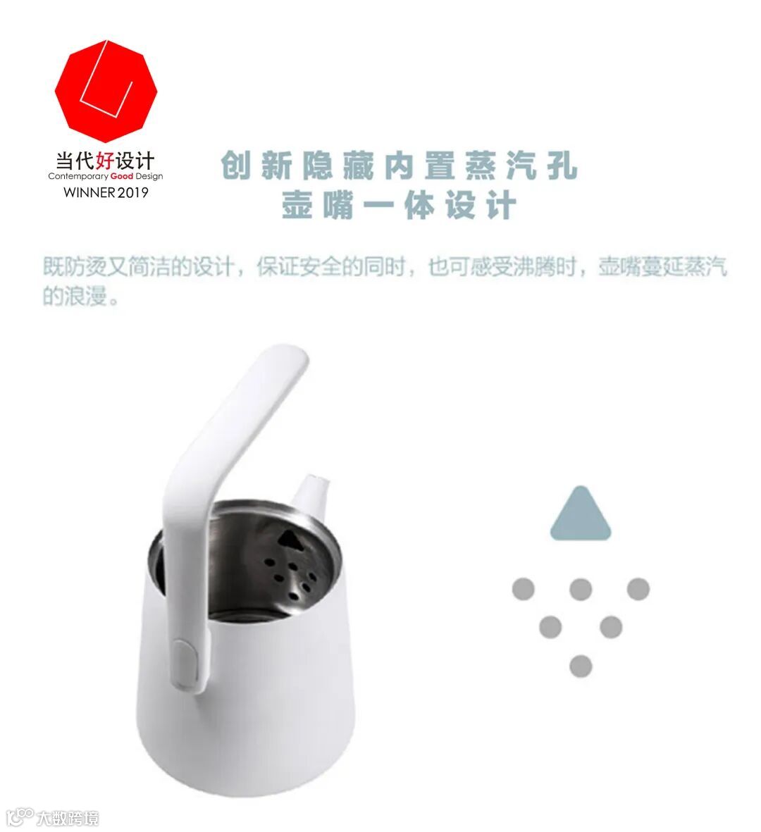 天圆地方,人生极境;半天提梁,游刃有余。几拾半天壶的设计灵感来自设计者儿时与爷爷同饮清茶的回忆,那份温情与美好被融入壶嘴与握柄的设计中,最后由注水感的恰到好处呈现。科学控温,安全涂层,触控开关,茶壶的设计巧妙的添加了现代技术的辅助,仿佛儿孙对话,时代交叠,在天圆地方中形成真诚的沟通与合作。有温度,有深度,多喝热水,其实很真诚~