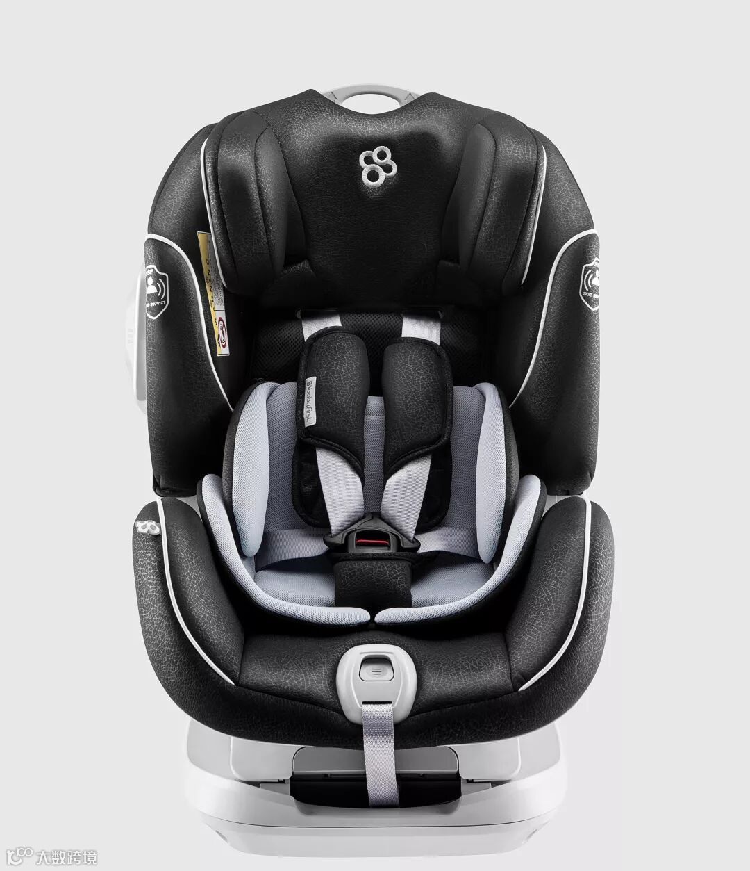 这是一款适合新生儿到25公斤儿童(年龄约0~6岁)的汽车安全座椅。正向和反向安装均可使用ISOFIX接口加上拉带方式固定,180度旋转调节正反向,通用各种车型防止误用。强大的侧面防撞系统有效增强侧面保护。提供成长性空间调节系统:头枕与肩带联动式高度无极调节、两档五点式安全带卡扣和内衬垫。符合人体工程学、自带角度调节,满足儿童乘车时的多种姿势。专业透气速干面料使乘坐时舒适凉爽。拥有多项专利技术以及国标、欧标等多项认证。造型现代、时尚。环抱式设计更好的呵护儿童。