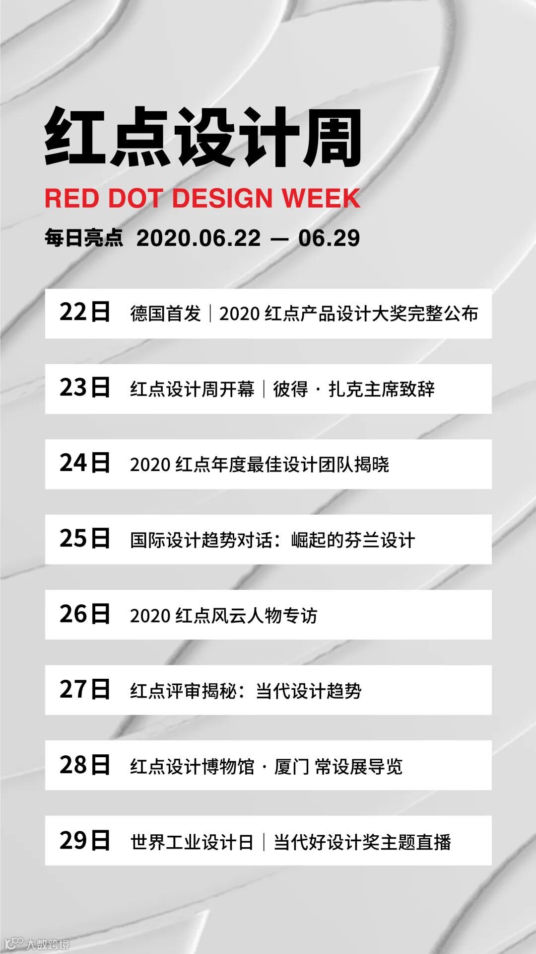 全球首个红点设计周,从今天起至6月29日将连续7天不间断呈现在线授奖、线上展览、国际设计趋势对话、红点评审设计解读等超过50项专题内容,为中国设计爱好者完美呈现年度设计盛宴。欢迎扫码报名加入~