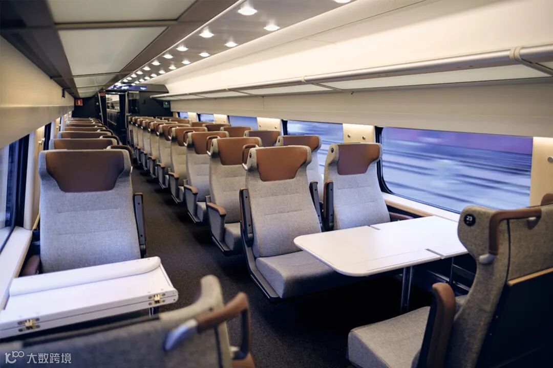 SJ X2000高速火车车厢内部的各个元素之间和谐且相辅相成,整体外观精致动人,其精心打造的照明理念营造出车厢内温暖和幸福的感觉。这列火车的座位具有高度专属感,全新开发的座椅,带有厚坐垫,设计符合人体工学,乘坐极舒适。