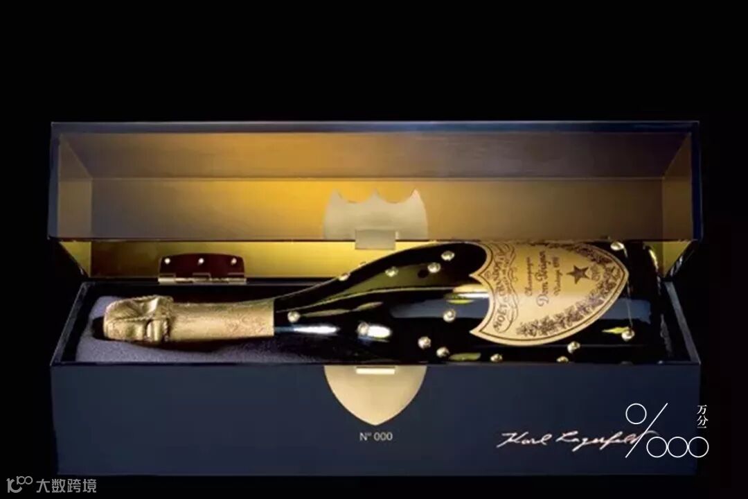 除此之外,老佛爷还和著名的唐培里侬香槟(Dom Perignon)合作,于1998年推出限量版的瓶身设计。瓶身镶嵌黄金,命名为“A Bottle Named Desire (欲望的一瓶)”。