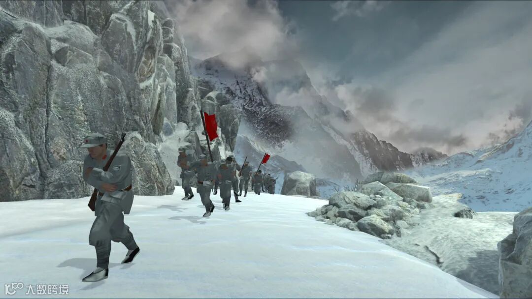 通过VR技术让体验者身临其境目睹红军翻越着终年积雪,空气稀薄,风暴、雪崩不断的大雪山,通过人机互动救起差点跌落悬崖的战友,学习红军不怕艰苦的精神。